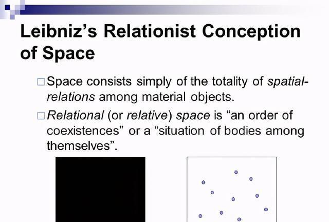 而莱布尼茨则表示空间和时间只不过是世界上所有物体和事件之间的距离和持续时间的总和。如果我们去掉宇宙包括的内容,我们也会去掉空间和时间。这就是空间和时间的「关系」观点: 它们只是对象和事件之间的空间和时间关系。关于空间和时间的关系观点是爱因斯坦广义相对论的主要灵感来源。